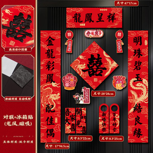 结婚对联磁吸男方入户大门女方出嫁喜联婚礼专用婚房布置装饰用品