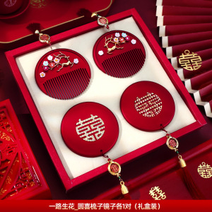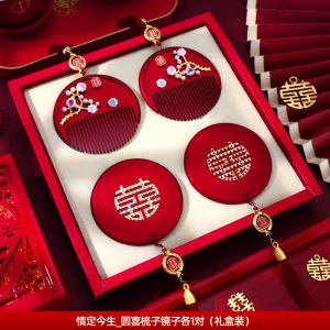 礼盒装【十里红妆梳子1把+佳偶天成梳子1把+圆喜流苏镜子1对】