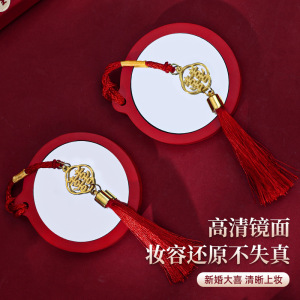 镜子结婚陪嫁一对红色小镜子梳子婚礼高档小圆镜女方陪嫁用品大全