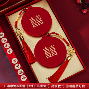 喜字流苏圆镜【1对】礼盒款