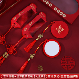喜字圆镜+流苏梳子套装【礼盒款】