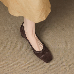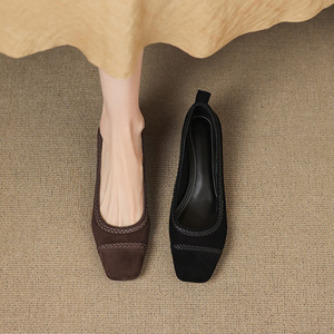 春秋季绝美巨软羊反皮磨砂方头单鞋女浅口低跟粗跟不累脚软底舒服