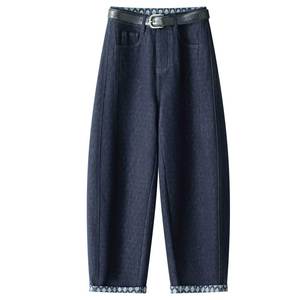 窄版弯刀牛仔裤2025年秋季遮肉高腰显瘦小个子宽松阔腿卷边哈伦裤