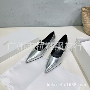 高端2025秋新款真皮尖头复古坡跟一字扣带玛丽珍鞋时装单鞋小皮鞋