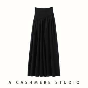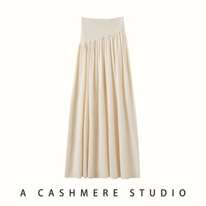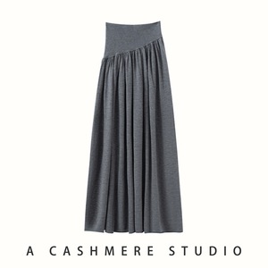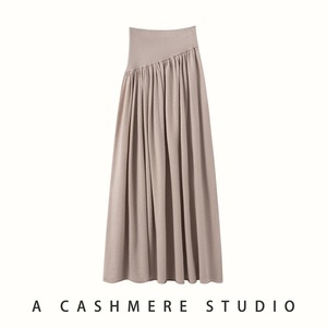法式秋冬新款松紧高腰显瘦褶皱中长款山羊绒针织半身裙百褶伞裙女
