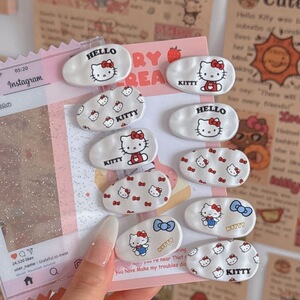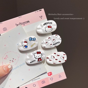 可爱甜美珍珠白KT猫椭圆发夹卡通少女ins百搭刘海夹网红发卡批发