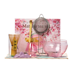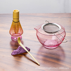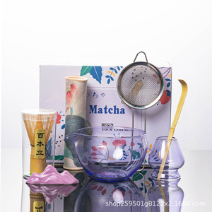 跨境专供日式新款玻璃抹茶碗套装点茶工具茶筅立玻璃碗组盒套装