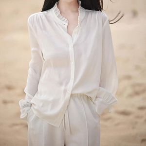 大喜西西里真丝衬衫|高智感老钱风衬衫木耳边上衣202秋季新款衬衫