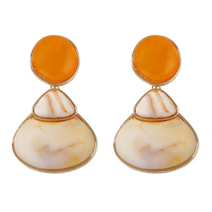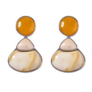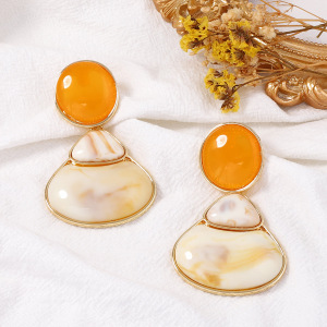 ZA跨境时尚气质个性合金多彩树脂石纹几何纽扣式耳坠潮流百搭耳饰