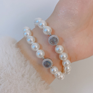 925银海蓝宝石澳白珍珠手链气质网红法式复古时尚弹力可调节手串