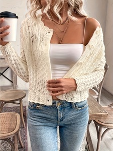 跨境亚马逊速卖通TEMU专供2025新款欧美女士敞开前空领纽扣毛秋