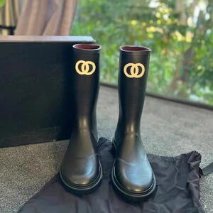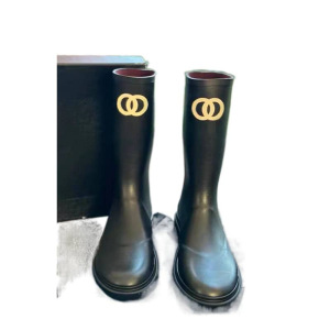 时尚小香风不过膝长靴女中长筒中古风靴防滑黑色高筒骑士橡胶雨靴