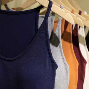 2025早秋极简工字背百搭螺纹吊带背心带胸垫女内搭可外穿打底吊带