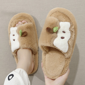 可爱苹果拖鞋女秋冬季家居家用学生宿舍毛绒保暖露趾毛毛拖鞋女款