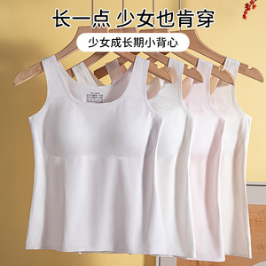 磨毛牛奶绒少女发育期长款背心内衣女童二阶段大童初中生内穿背心