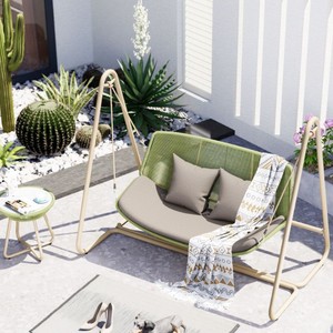 【豪华电动款】鲲鹏双人果绿色秋千-无顶棚