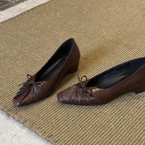 羊皮版~法式复古方头蝴蝶结褶皱小众设计女气质通勤百搭浅口单鞋