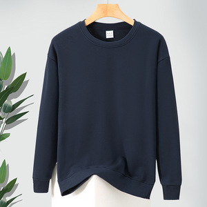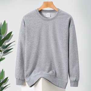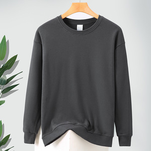 深灰色重磅纯棉毛圈圆领卫衣男士春秋美式宽松无帽长袖上衣打底衫
