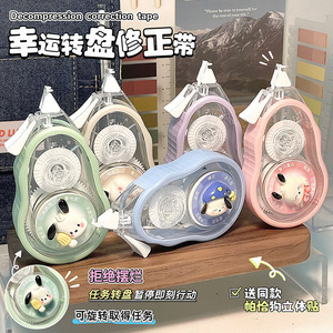 幸运转盘修正带莫兰迪色系翻盖改正带顺滑大容量可爱帕恰狗涂改带