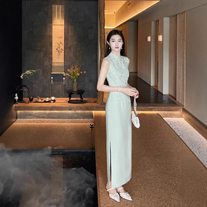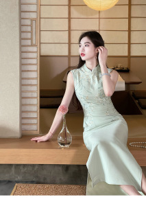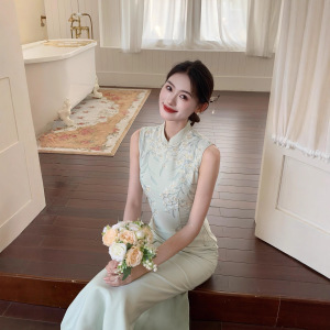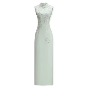 1785 跨境外贸女装青绣新中式气质优雅绣花改良旗袍夏季女连衣裙