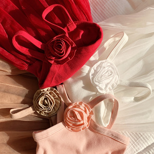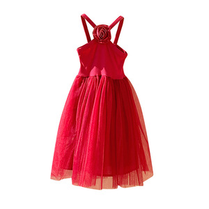 2025夏季新款法式玫瑰花吊带女童连衣裙甜美洋气网纱公主裙沙滩裙