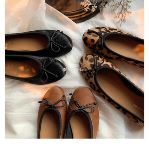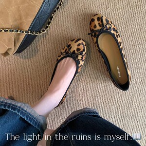 现货秒发~葡萄妈 真皮马毛经典小圆头通勤百搭蝴蝶结豹纹单鞋女