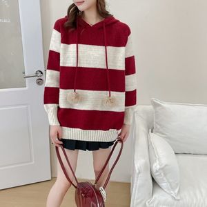 2025年秋冬新款韩系慵懒风条纹连帽套头毛衣卫衣女针织衫宽松上衣