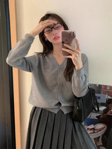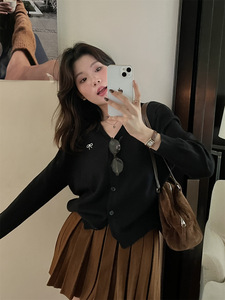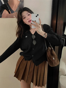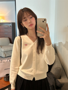 韩系设计感绣花防晒衫上衣女2025早秋款毛衣甜美小众v领针织开衫