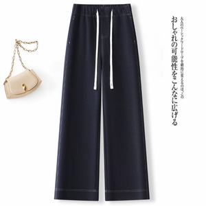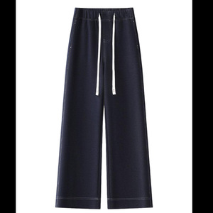 松紧腰抽绳牛仔阔腿裤女2025秋季新款百搭长裤宽松显瘦垂感休闲裤