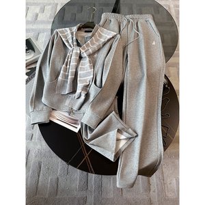 深圳南油欧货运动套装女秋洋气减龄外套上衣条纹披肩阔腿裤三件套