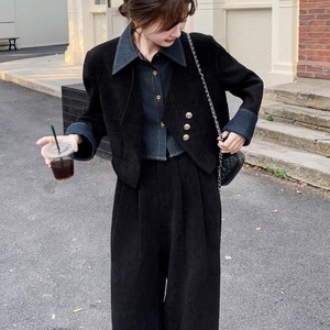 法式复古高级感上衣长裤两件套春秋季新款女气质阔腿裤假两件套装