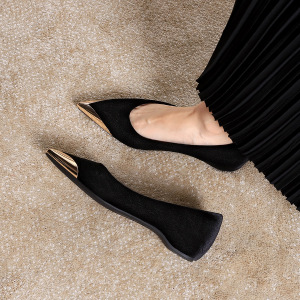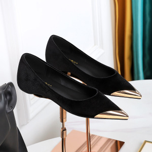 531-20韩版风一脚蹬内增高低跟鞋西施绒简约浅口平底金属尖头单鞋