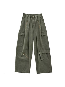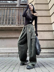 美式复古多口袋水洗宽松工装裤男女潮牌街头做旧抽绳百搭阔腿裤子