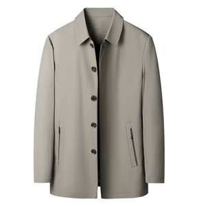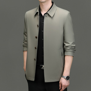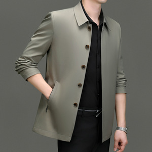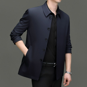 高档桑蚕丝夹克外套男春秋款中年爸爸装商务纽扣翻领茄克休闲上衣