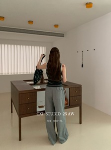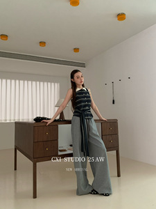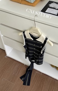 CXI 条纹针织刺绣背心秋季新款开衫POLO领马甲修身显瘦高级感上衣