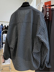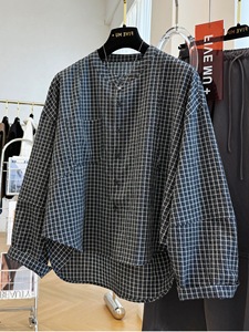 韩系复古格子宽松休闲圆领长袖衬衫女早秋季薄款上衣潮外套A6152