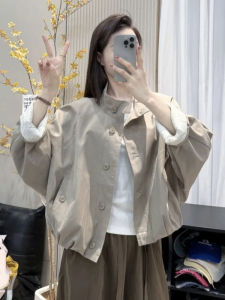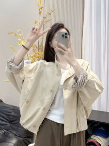欧货英伦风立领夹克外套女2025新款宽松休闲内里条纹短款风衣上衣