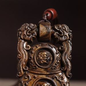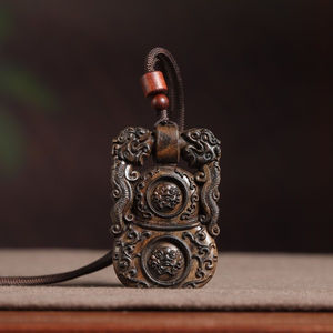沉香木雕刻天地锁财虎符牌项链吊坠双龙貔貅脖挂平安无事牌车挂件