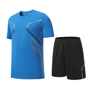 跑步服套装定制夏季速干短袖套装可印logo户外健身服运动两件套男