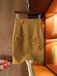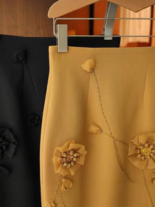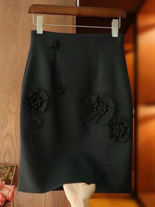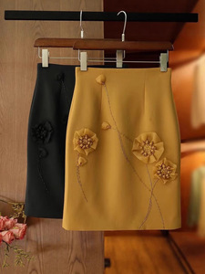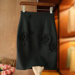 高级感名媛气质小众设计立体花朵时尚钉珠高腰包臀半身裙秋冬新款