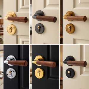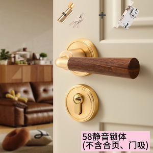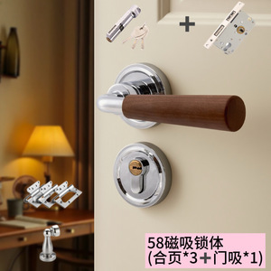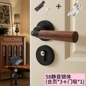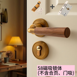 中古风复古门锁卧室静音房间门锁胡桃木门把手室内磁吸木门分体锁