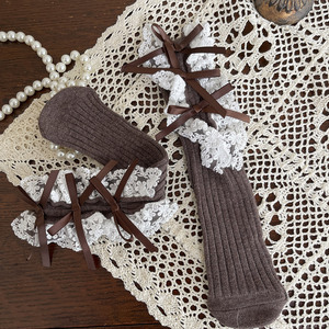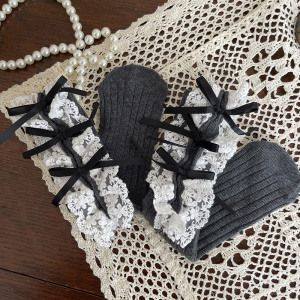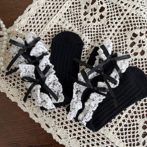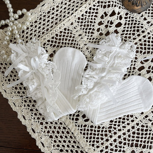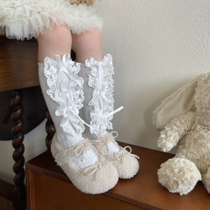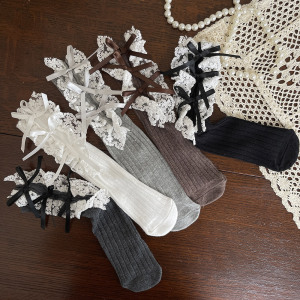 hotmoon新品设计师款蝴蝶结花边刺绣韩系女儿童宝宝学生堆堆袜女