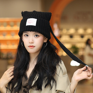 欧美小众设计个性猫猪耳朵情侣针织毛线帽可爱保暖秋冬男女帽子潮