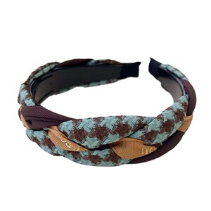 棕绿格纹编织麻花发箍女2025新款高颅顶防滑头箍百搭洋气压发发卡