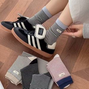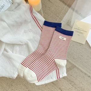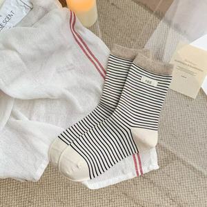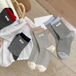 25秋冬新款袜子女中筒袜条纹字母布标女袜日系ins 潮休闲简约棉袜