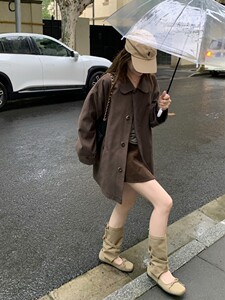 im向 诺丁山街角’质感满满韩系翻领小个子中长款风衣外套女秋季