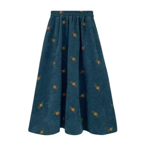 复古灯芯绒刺绣半身裙女秋冬碎花设计a字森林系中长款裙子