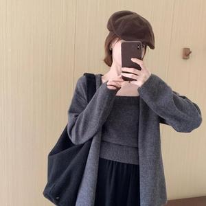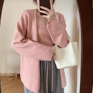 纯色休闲针织吊带背心两件套2025秋季新款韩版小个子上衣内搭套装