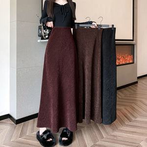 2025鱼尾裙绒面秋冬新款高腰中长款遮垮显瘦a字包臀半身裙
