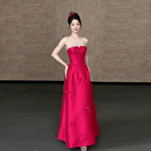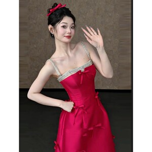 缎面订婚礼服裙女轻奢小众高端晨袍新娘敬酒服甜美气质生日宴会夏